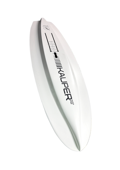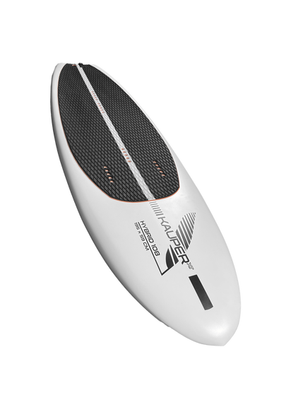 Ich möchte mit meinem Board nicht nur möglichst einfach aufs Foil kommen, sondern auch einen breiten Einsatzbereich haben. Dazu zählt für mich auch der Einsatz in Wellen mit dem Wing, oder Parawing. Deswegen habe ich mich für eine Outline wie bei einem Surfboard entschieden. Diese Outline unterstützt mein Ziel kaum Widerstand zu erzeugen und sorgt gleichzeitig dafür, dass bei einem Kontakt des Boards mit dem Wasser während des Foilens kein Verschneiden stattfindet. Aufgrund des schmalen Kiels auf der Unterseite konnte ich das Board etwas breiter shapen, ohne Leistung zu verlieren, dafür aber mehr Stabilität zu erhalten und auch mehr Bewegungsfreiheit für meine Standpositionen auf dem Board. Diese Freiheit gibt mir gerade bei Manövern mehr Spielraum, da ich einfach mehr Platz auf dem Board habe. Schwerere Fahrer finden zudem auch einfacher die Balance auf dem Board.